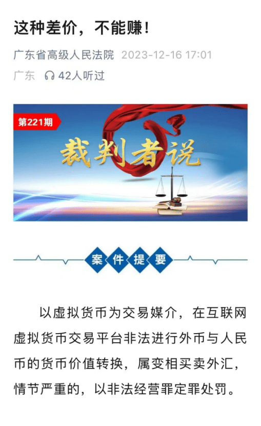 2025-12-22永利皇宫,永利皇宫官网,永利皇宫娱乐场,永利皇宫APP下载案情很简单:被告人陈某伙同两名未到案的嫌疑人,商量以虚拟货币USDT作为交易对象,按美元价格兑换人民币。商量好后,陈某在虚拟币交易平台向散户收购USDT,还雇了被告人李某当保镖,护送自己。2022年2月,在中山市某高速路口,陈某利用手机与黄某进行USDT交易约81.4万个,按当天人民币与美元的汇率进行兑换共计人民币510万余元。结果,在租车返程途中,陈某、李某在检查站被公安干警拦截,交易款被当场扣押。大埔县人民法院认定,被告人陈某、李某无视国家法律,利用买卖虚拟货币的形式变相买卖外汇,